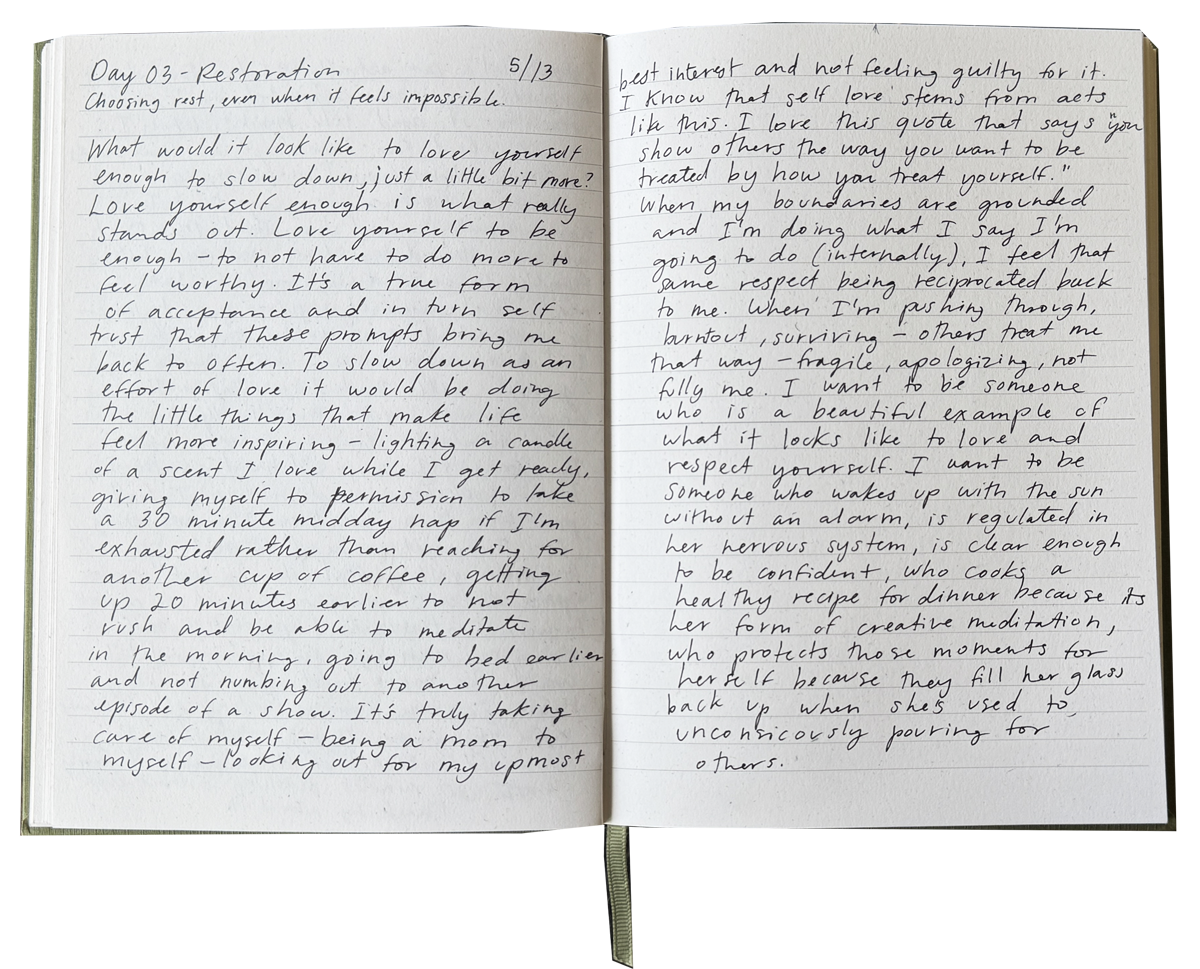 Day 03 of the Restoration course asks us to daydream — to get specific about what a slow day without a schedule would look like.